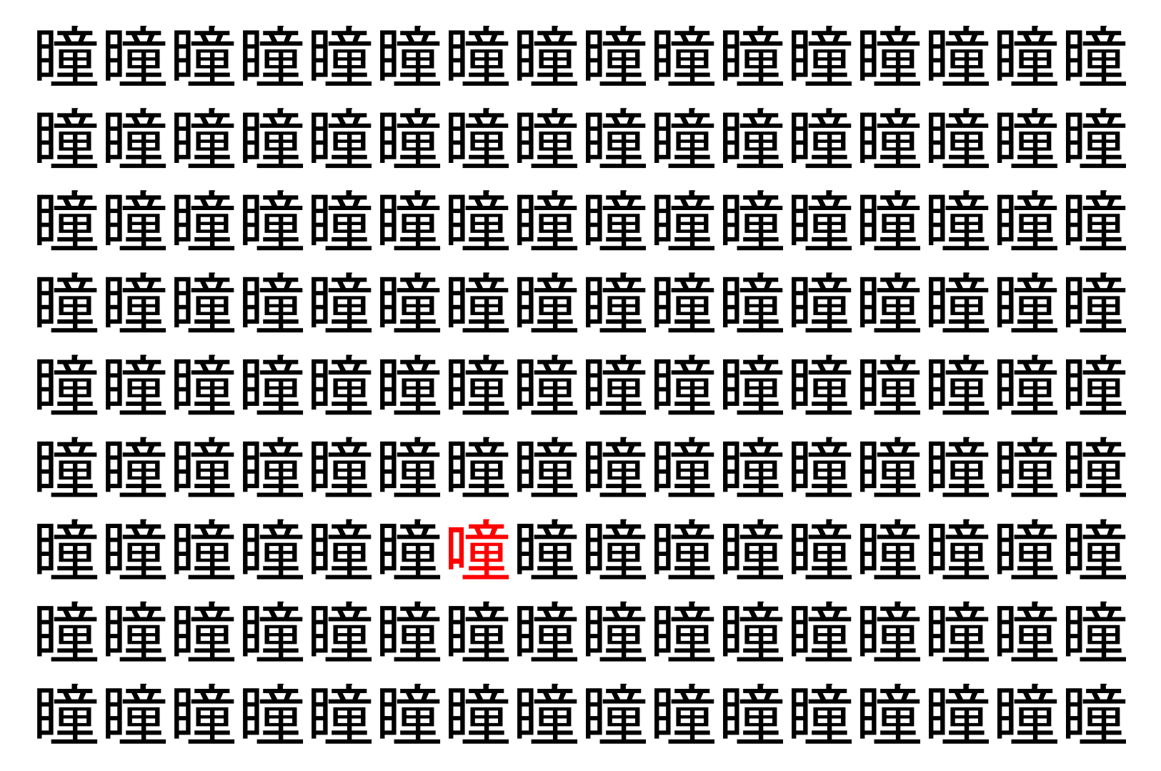 画像の中には、「瞳」という漢字が縦に9行、横に16個並んでいます。