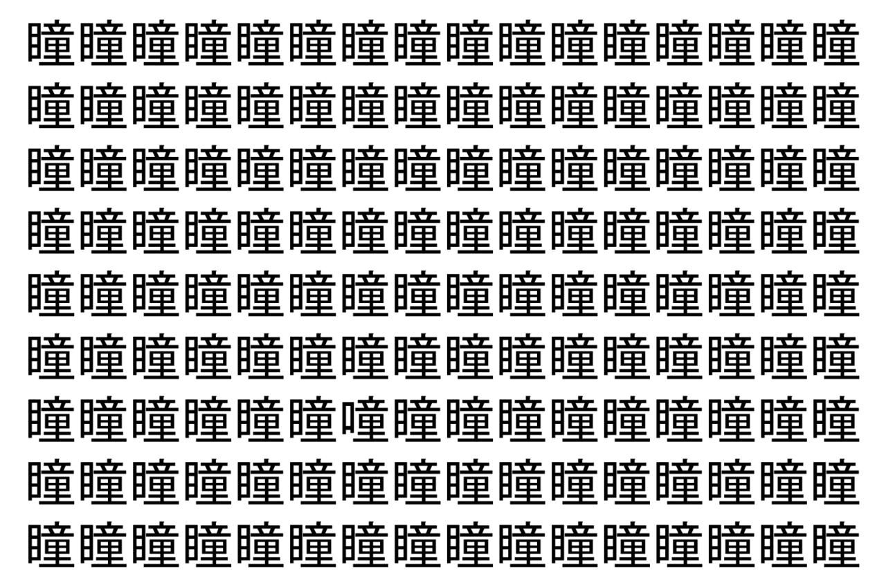 【脳トレ】「瞳」の中に紛れて1つ違う文字がある!?あなたは何秒で探し出せるかな??【違う文字を探せ!】