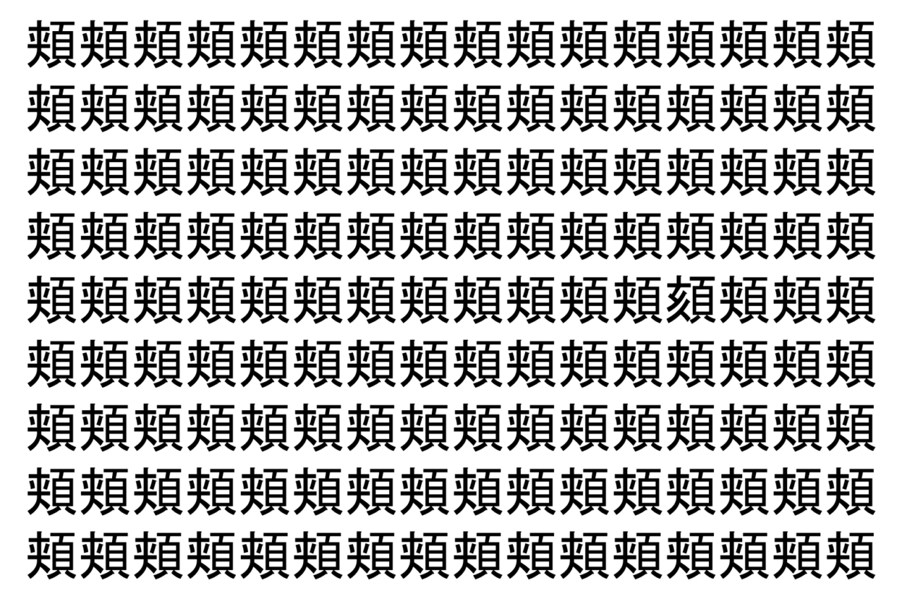 【脳トレ】「頬」の中に紛れて1つ違う文字がある!?あなたは何秒で探し出せるかな??【違う文字を探せ!】
