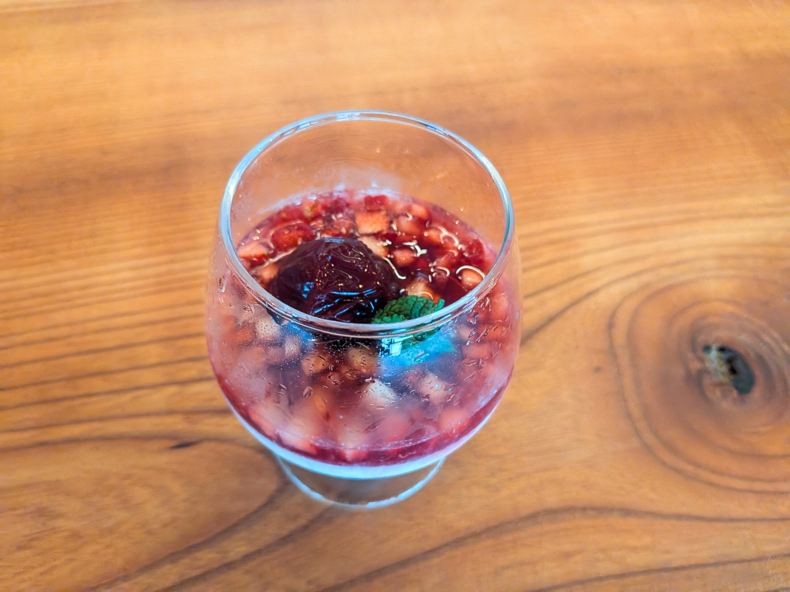 デザート 杏仁豆腐 プラムのコンポート イチゴソース