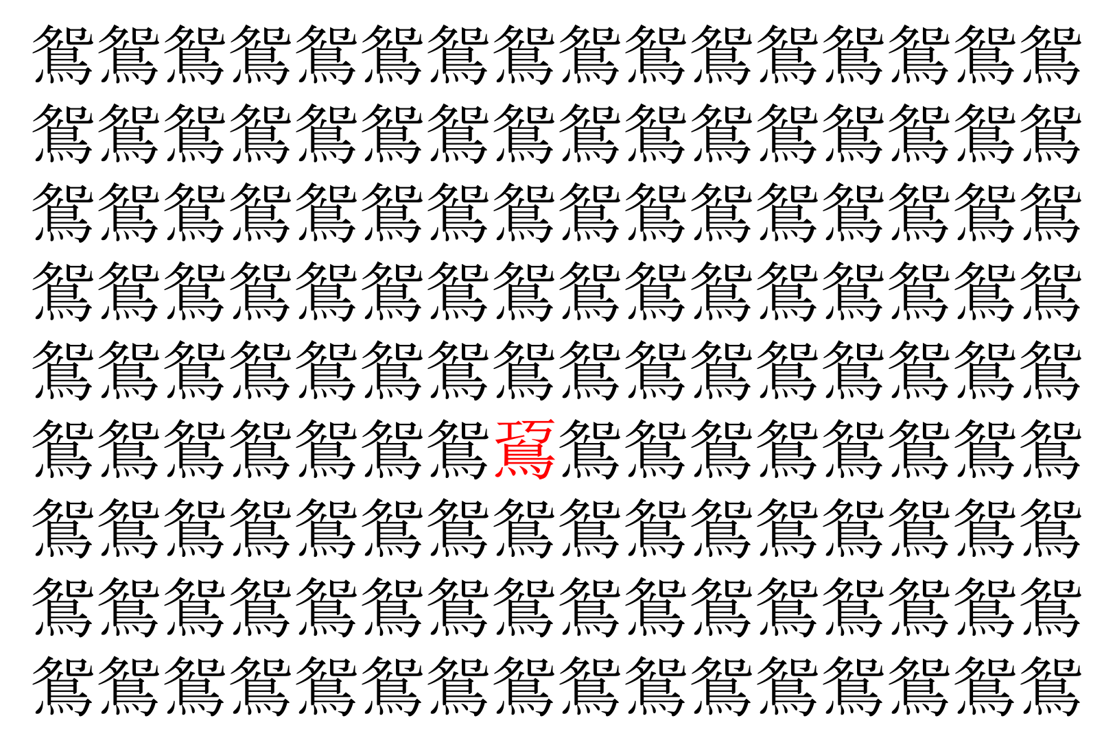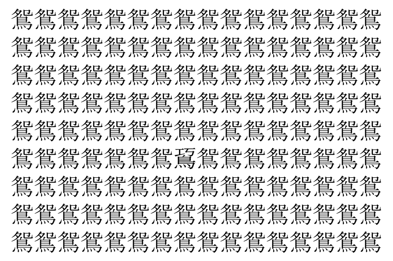 【脳トレ】「鴛」の中に紛れて1つ違う文字がある!?あなたは何秒で探し出せるかな??【違う文字を探せ!】