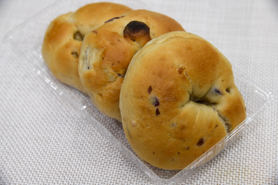 続いてデザートの現場を通過し、これも不動の人気商品である『プレミアムチーズケーキ』にラベルが貼られる作業を横目に見ながらパン成形室に辿り着くと、そこでは『ごろっとマカダミアとクランベリーのもっちり湯種ベーグル』の成形が行われている最中だった。