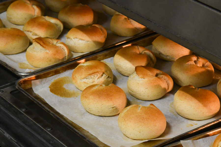 隣の焼成室では、巨大なオーブンからベーグルが焼き上がる瞬間も目撃し、室内中に漂うパンの香ばしい匂いにお腹がグ~と鳴る。