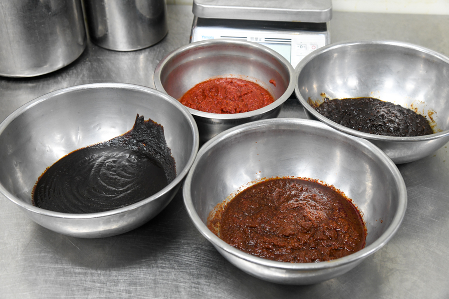 ここでサンプルとして用意されていたのは、『四川山椒ピリ辛麻婆豆腐』に使われている4種類の醤。