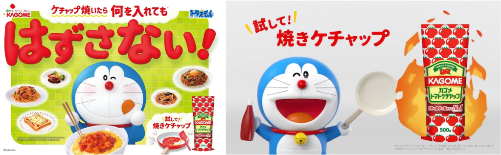 カゴメは、1908年の発売以来ロングセラーの「カゴメトマトケチャップ」を、もっと自由に、もっとおいしく使ってほしいという想いから「焼きケチャップ」を提案。ドラえもんと一緒に、忙しい朝でも簡単にできる“ひと手間レシピ”として普及を図っていく方針だ。