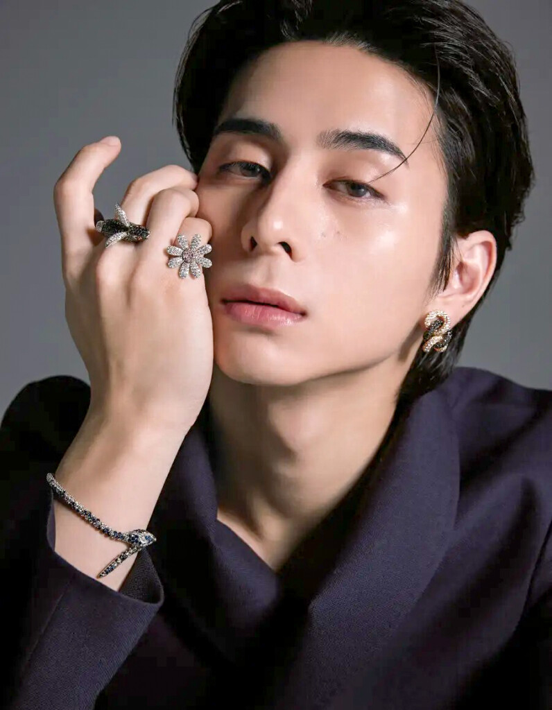 西洸人は、世界的にも人気のハイジュエリーMIO HARUTAKA(ミオハルタカ)をまとった。