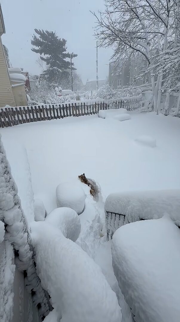 トイレのために、雪の中ながら外へ出た愛犬の姿を追っていた飼い主さん。