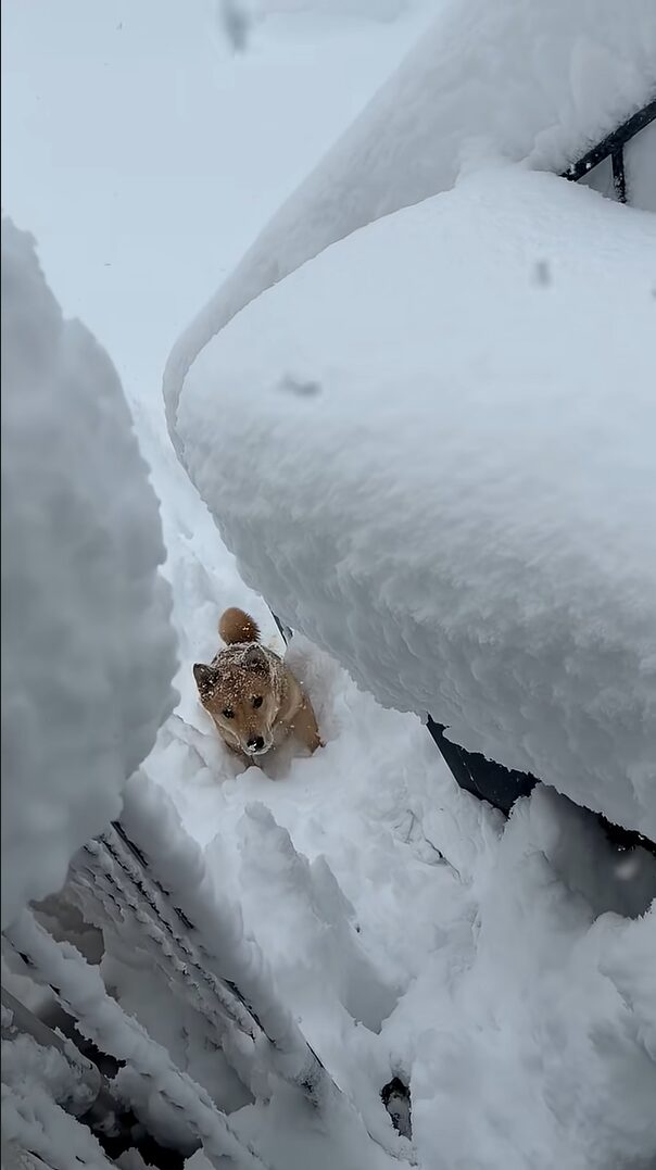 そんな雪の中、外に出ている愛犬の姿を飼い主さんは撮影していました。