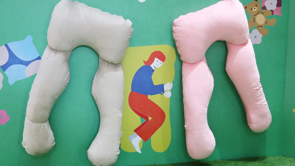 特に注目したいのが、フォトスポット。ハグモッチに身を委ね、心地よく眠っているような姿を撮影できる仕掛けが用意されている。柔らかな日差しを感じさせるライティングと華やかな花の背景は、まさに“映え”の極み。