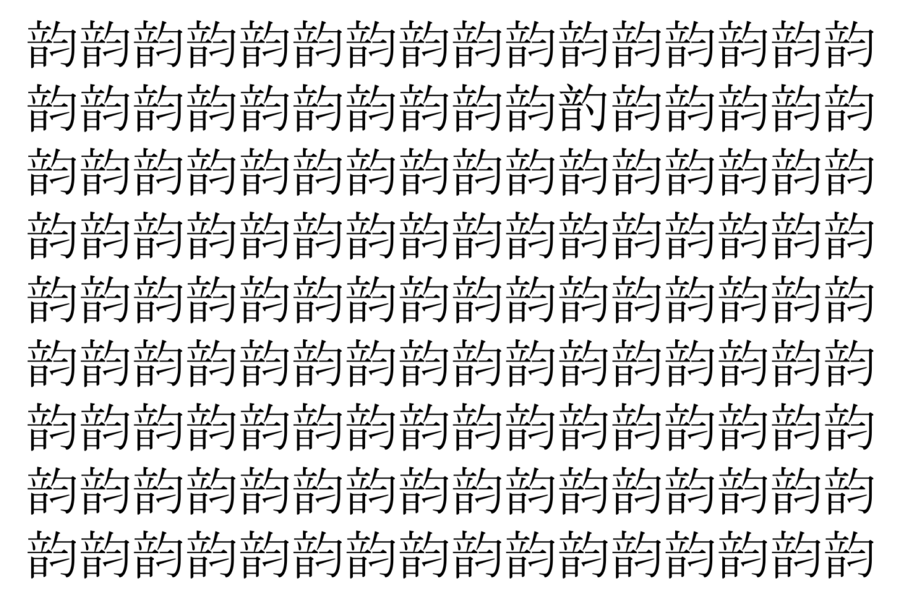 【脳トレ】「韵」の中に紛れて1つ違う文字がある!?あなたは何秒で探し出せるかな??【違う文字を探せ!】