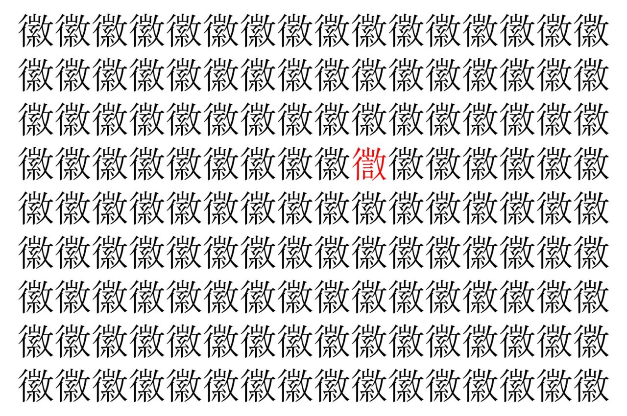 【脳トレ】「徽」の中に紛れて1つ違う文字がある!?あなたは何秒で探し出せるかな??【違う文字を探せ!】
