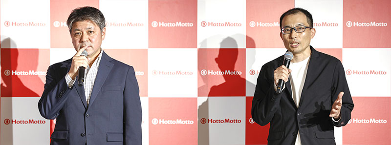 ほっともっと新CM発表会に登壇したプレナスHMマーケティング部 尾田喬 部長 商品開発部 山崎寛之 部長