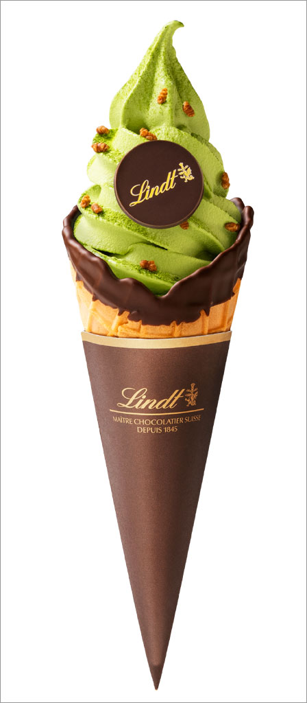 リンツ ショコラ ブティック&カフェ最新作『クレマジェラータ 天空の抹茶』(4/10~5/31 限定販売)は、リンツのホワイトチョコレートを使用したイタリア製造ソフトクリームタイプジェラートに、「天空の抹茶 65号」をブレンドした期間限定フレーバー。