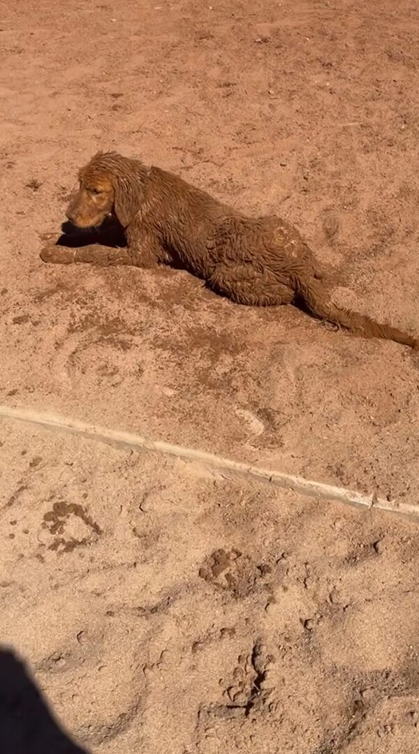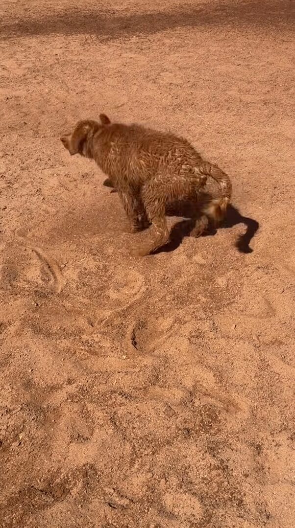 ゴールデンレトリバーの子犬が全身砂まみれ!?これもはしゃぎまわって遊んだ証だね!!【アメリカ・動画】