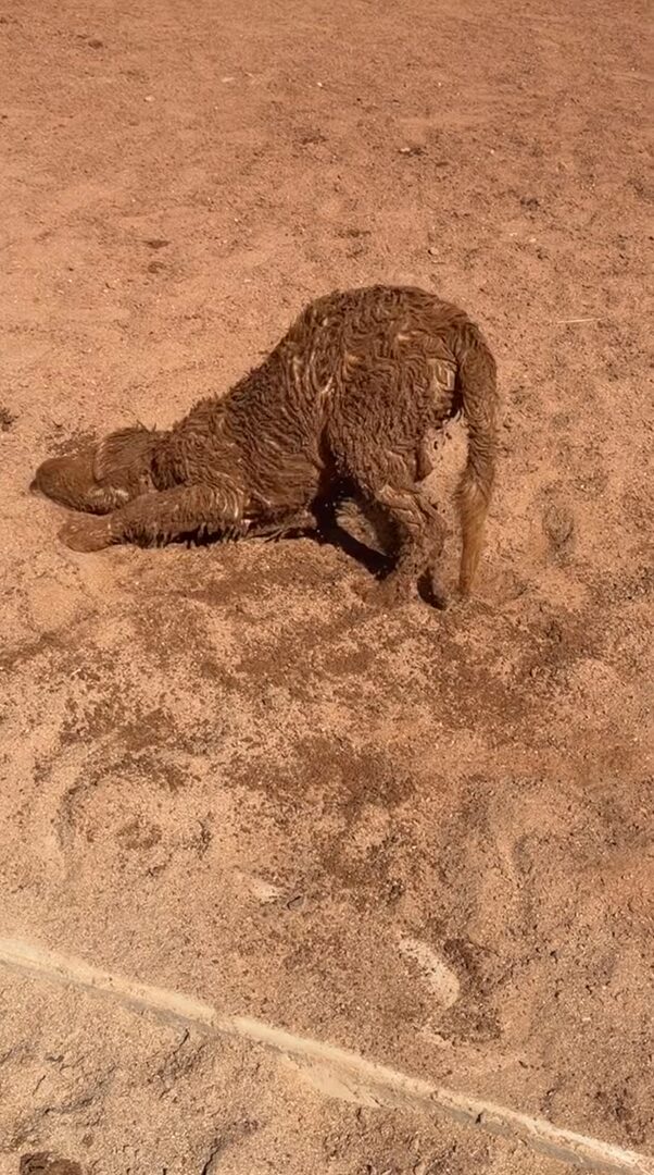 砂の上を転げ回ったのでしょう、もう全身砂まみれになっています。
