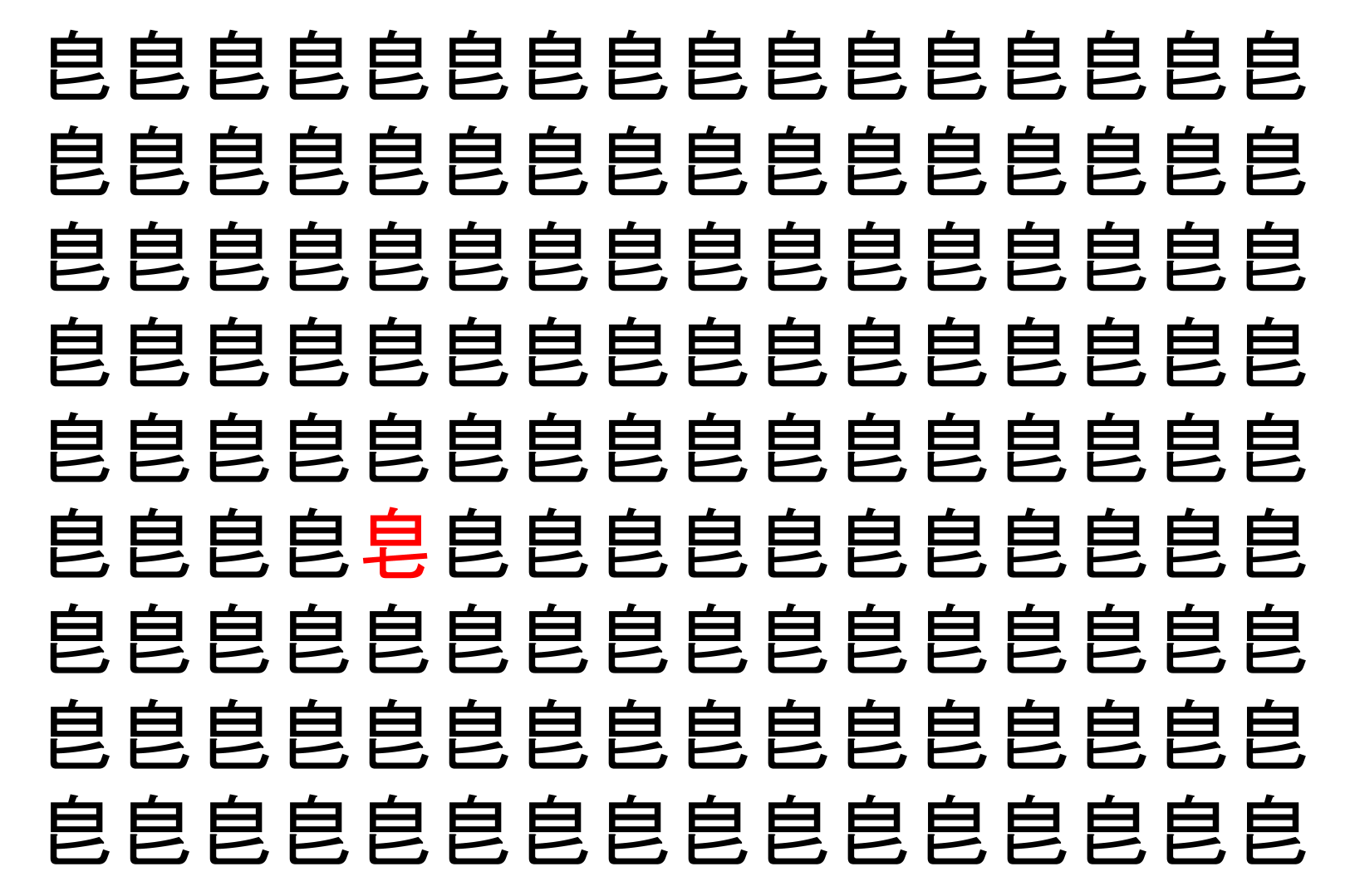 【脳トレ】「皀」の中に紛れて1つ違う文字がある!?あなたは何秒で探し出せるかな??【違う文字を探せ!】