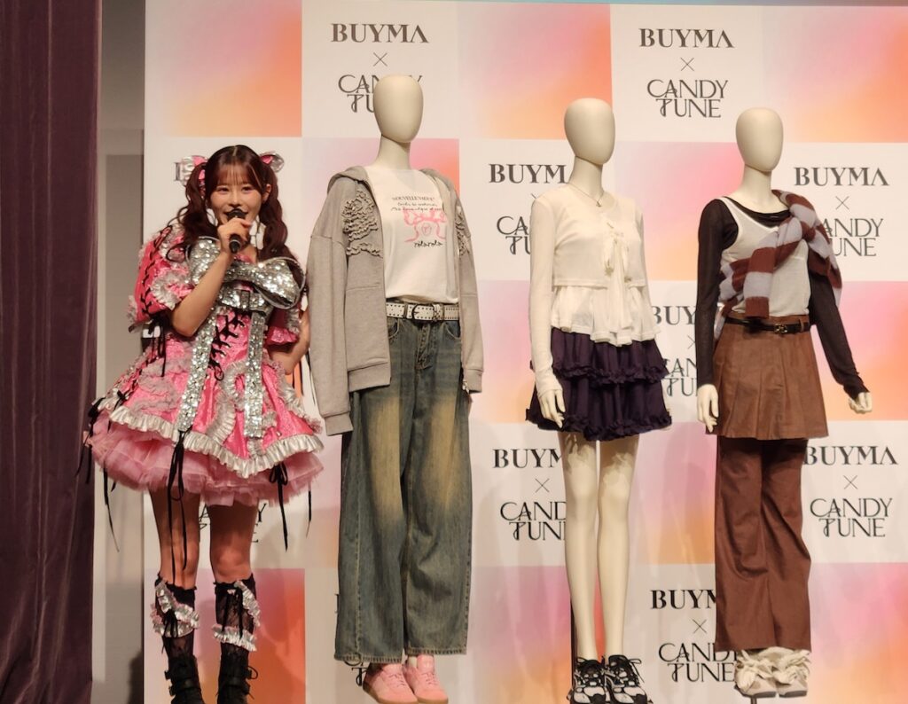 新CMが披露されると、出演した「CANDY TUNE」が登場!CM用に特別アレンジされた「BUY BUY GIFT!」のキュートなダンス「箱パカダンス」を披露。オリジナルダンスやCMで着用したBUYMAコーデについてのトークセッションも行われました。