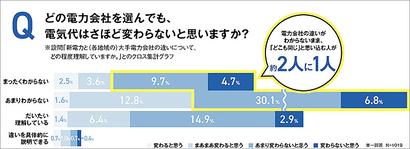 そして全体の約2人に1人が、電力会社の違いを十分に理解していないまま「電気代はさほど変わらないと思う」と回答していた。