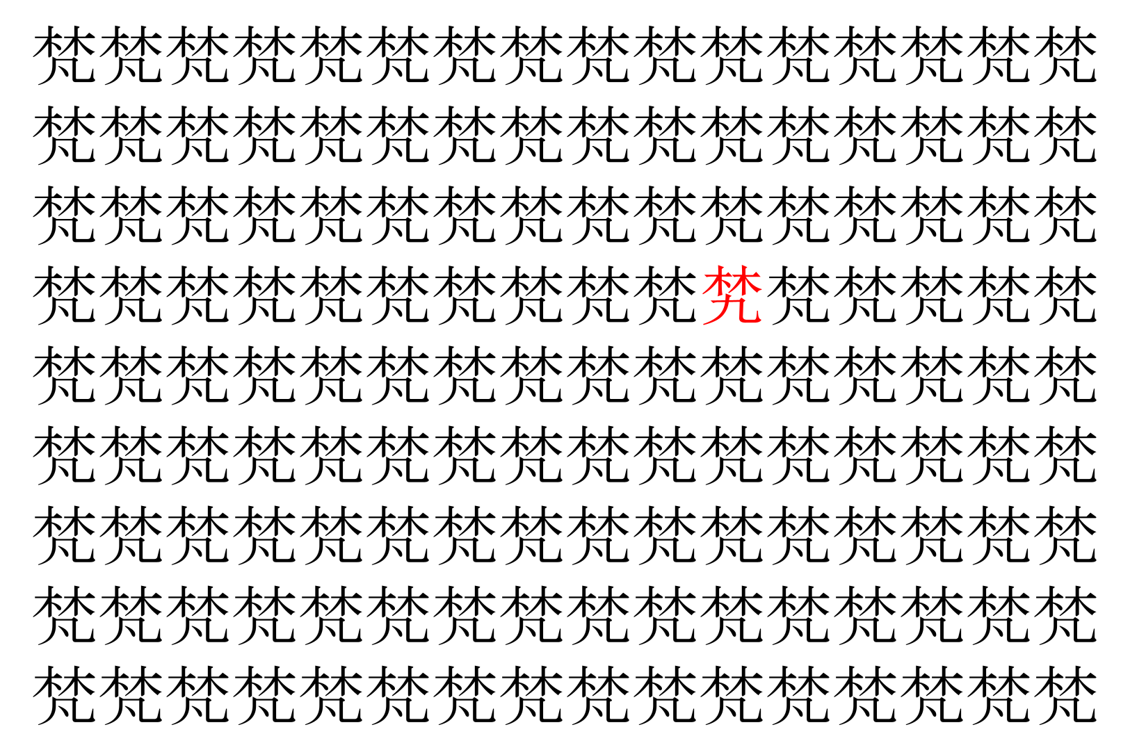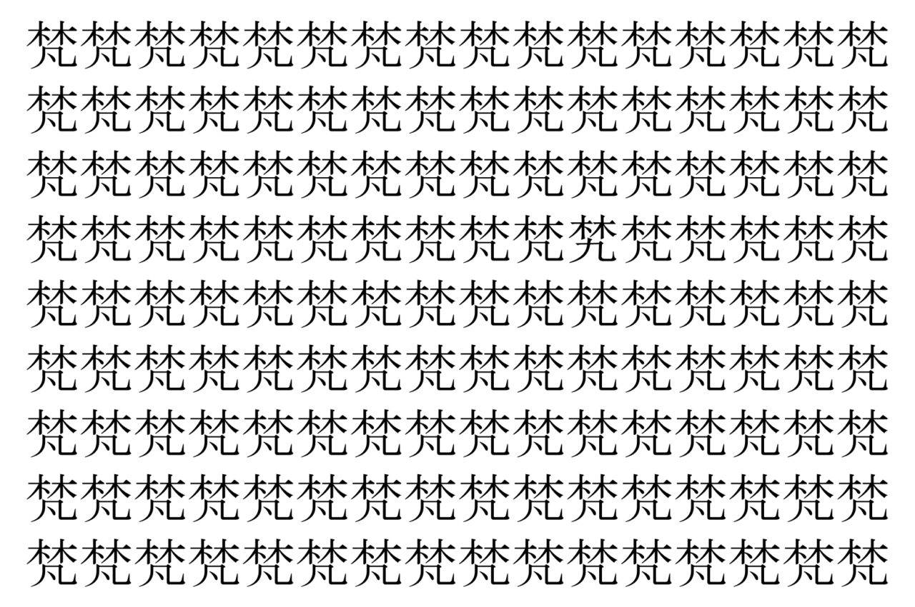 【脳トレ】「梵」の中に紛れて1つ違う文字がある!?あなたは何秒で探し出せるかな??【違う文字を探せ!】