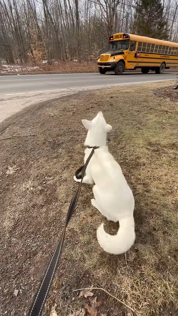 愛犬が待ち焦がれるのは・・。スクールバスが到着するともうじっとしていられない!!【アメリカ・動画】