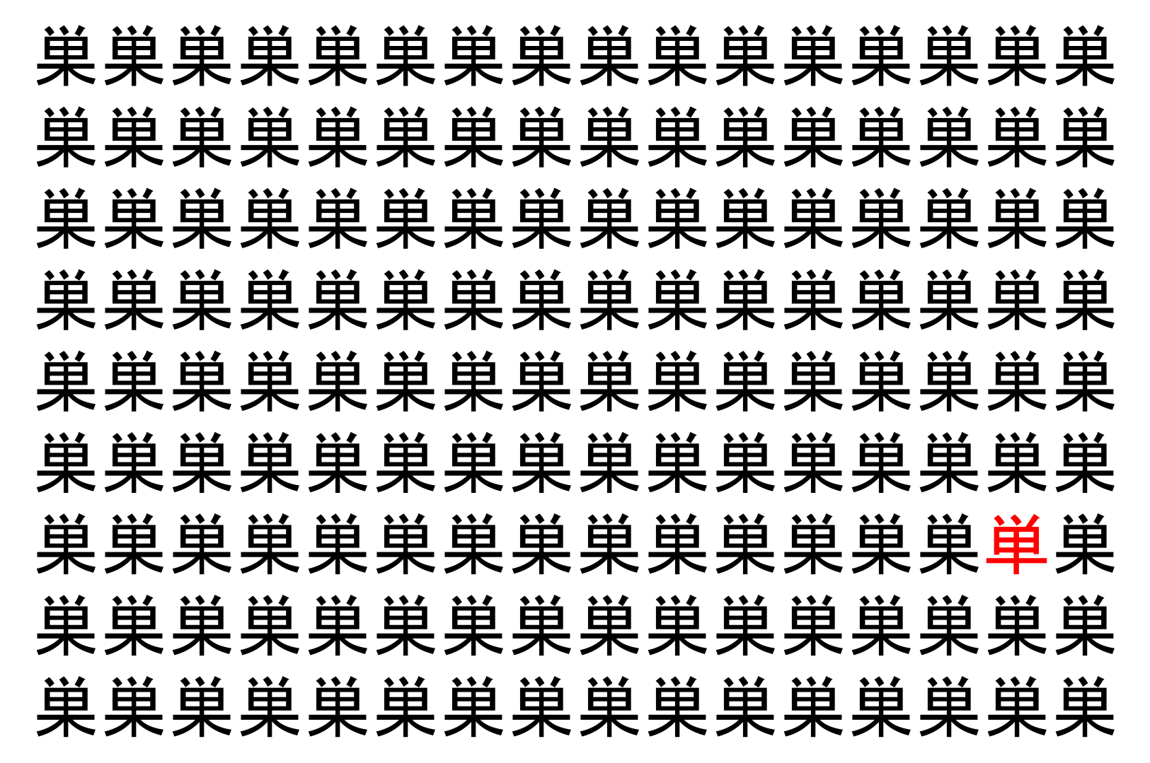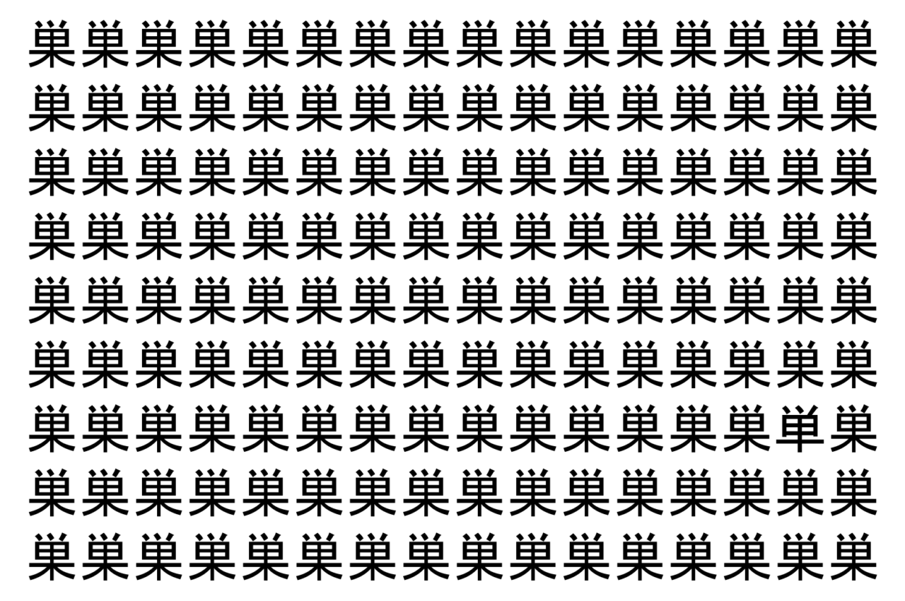 【脳トレ】「巣」の中に紛れて1つ違う文字がある!?あなたは何秒で探し出せるかな??【違う文字を探せ!】