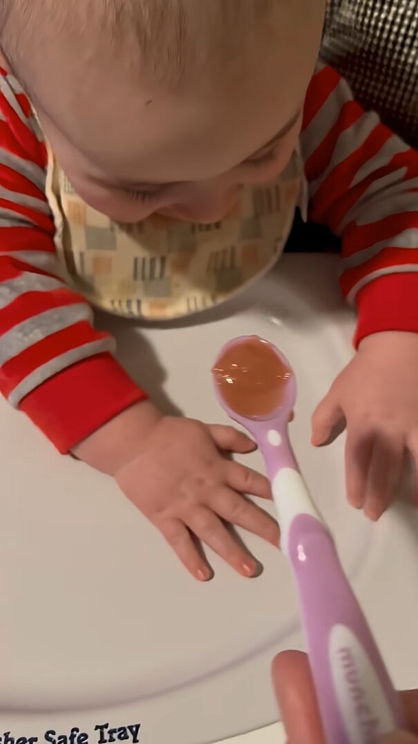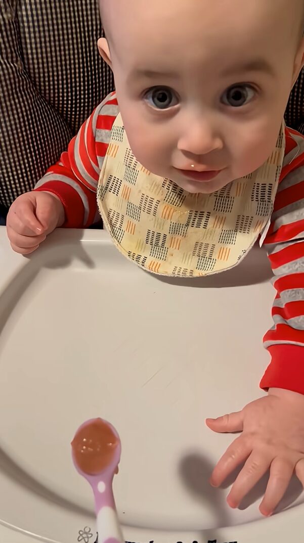 赤ちゃんがごはんを食べる様子を撮影しようとしたところ・・・。