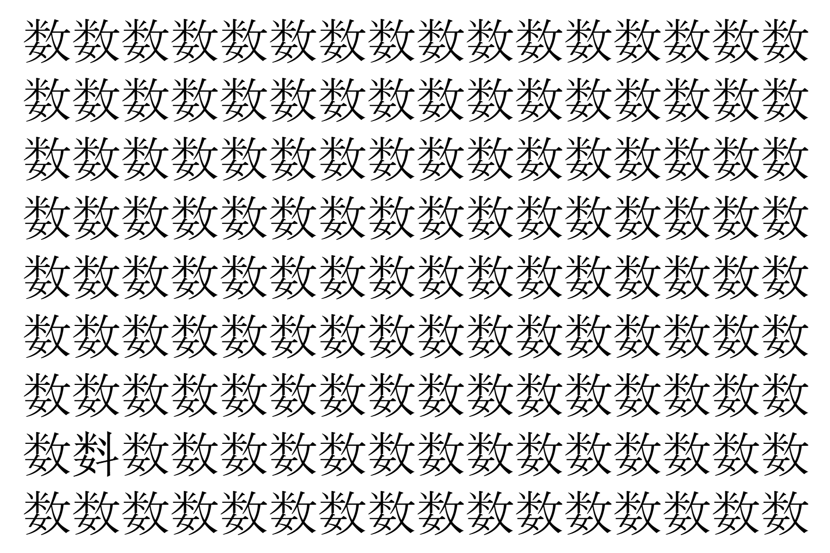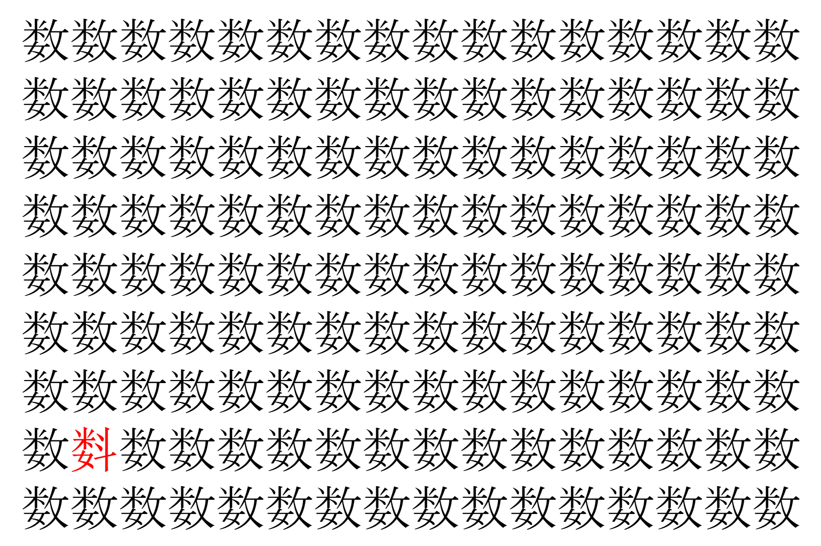画像の中には、「数」という漢字が縦に9行、横に16個並んでいます。