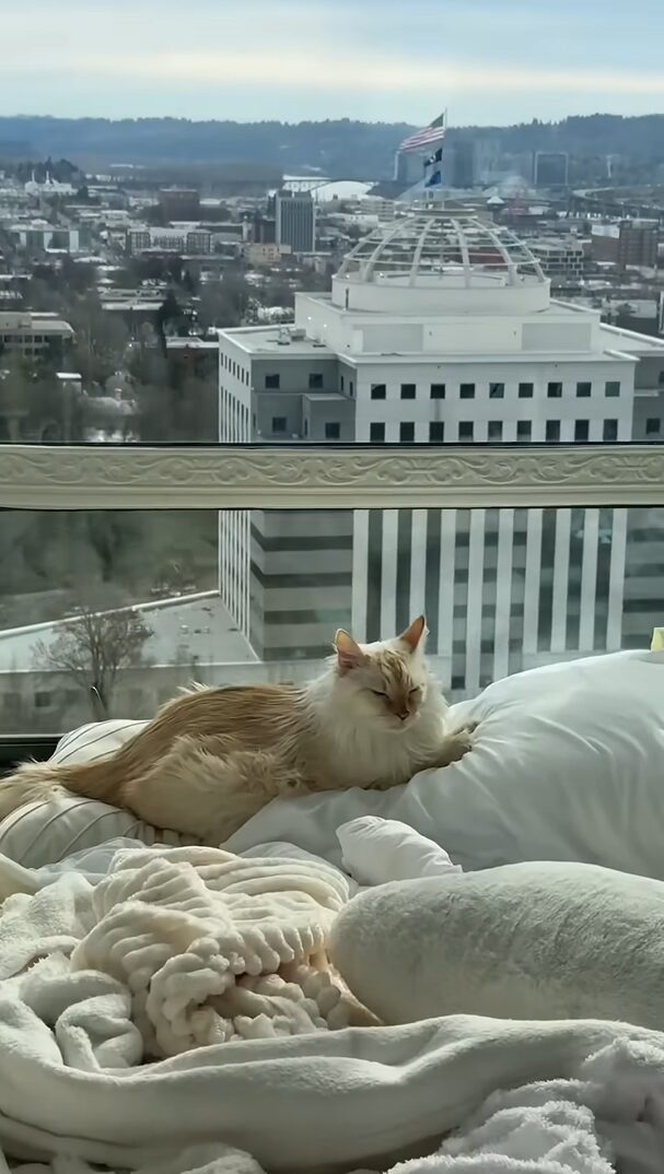 ここはあるネコのための王国!?ラグジュアリーな部屋の窓辺でネコがひなたぼっこ【アメリカ・動画】