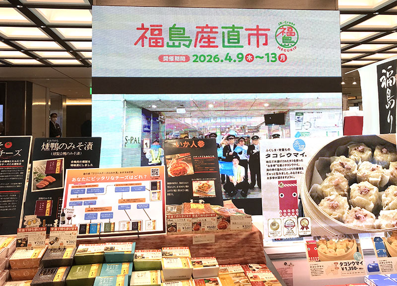 JR東京駅改札内 福島BAR『ほろ酔い、福島』(4/9~4/13 10~20時、最終日の13日は17時閉店)では、「福島産直市」も☆