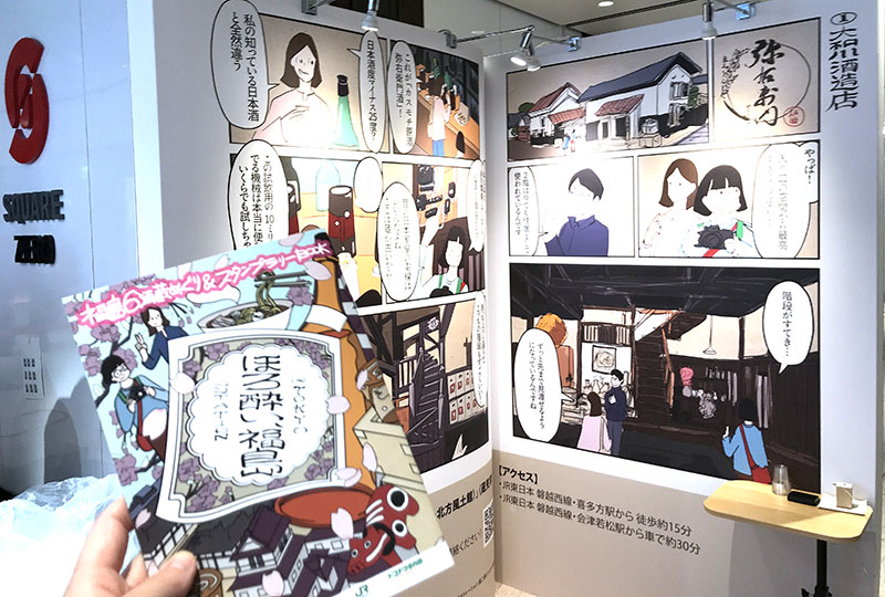 まず目に飛び込んでくるのは、福島の6つの酒蔵を舞台にした「旅の漫画」立体オブジェ☆