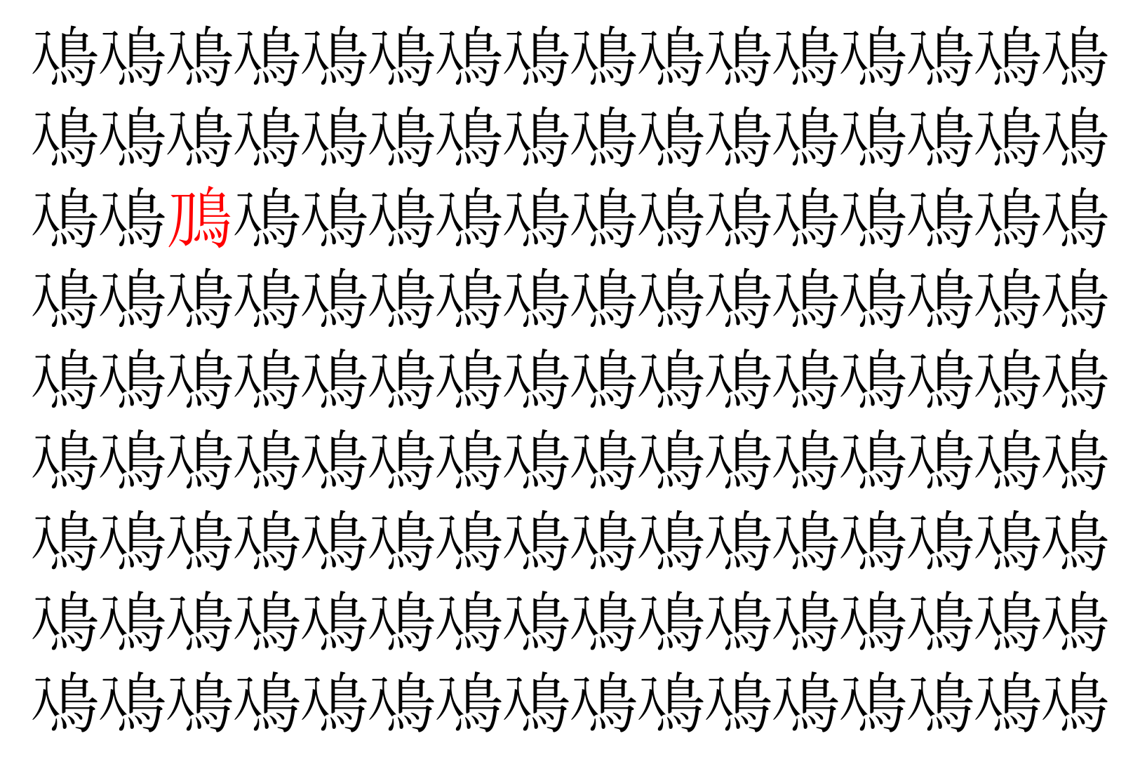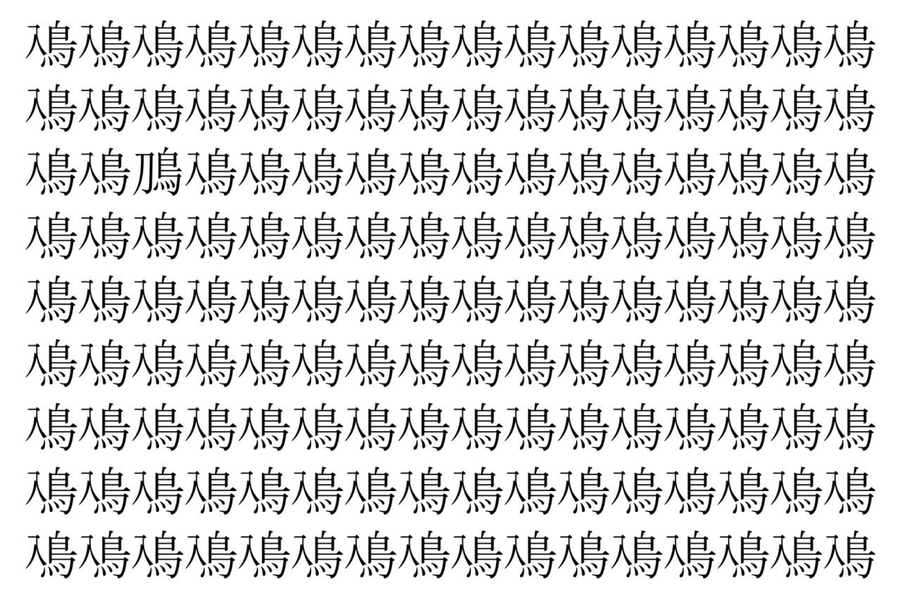 【脳トレ】「鳰」の中に紛れて1つ違う文字がある!?あなたは何秒で探し出せるかな??【違う文字を探せ!】