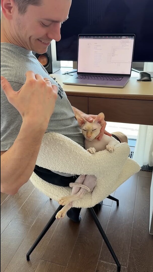そんな愛猫に対して、パパさんは仕事の手を止めて頭を撫でてあげるのでした。
