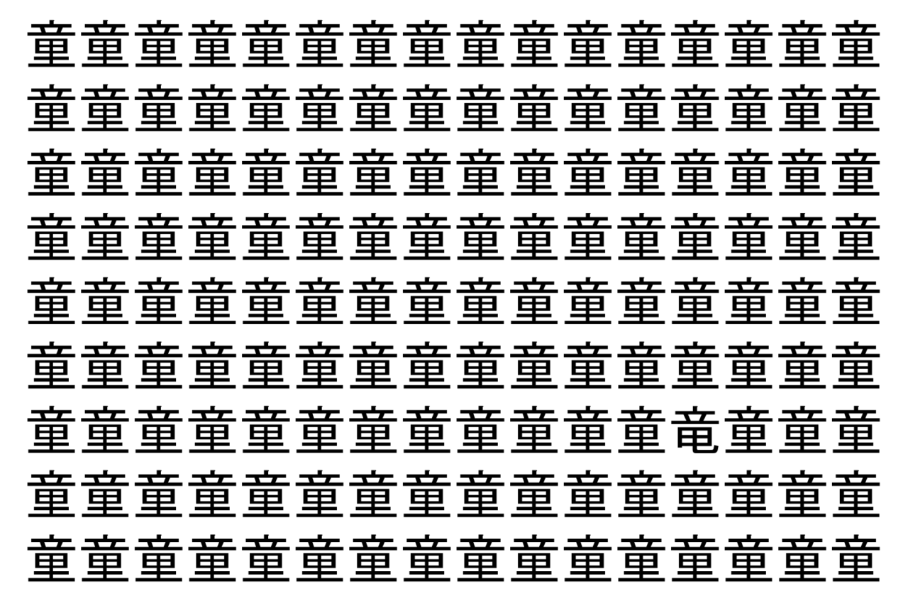 【脳トレ】「童」の中に紛れて1つ違う文字がある!?あなたは何秒で探し出せるかな??【違う文字を探せ!】