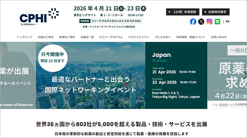 CPHI Japan 2026 国際医薬品開発展 4/21~4/23 @東京ビッグサイト に出展するイタリア企業18社