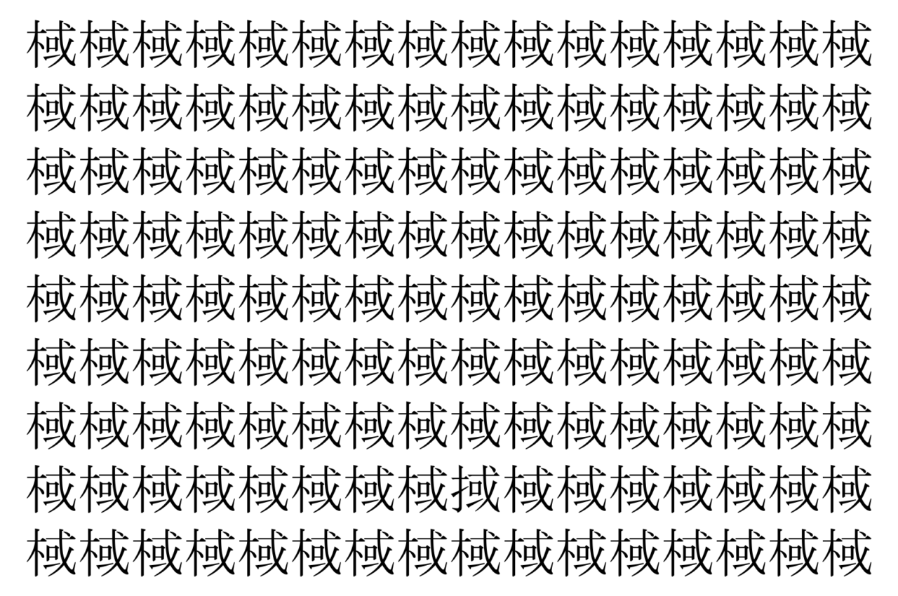 【脳トレ】「棫」の中に紛れて1つ違う文字がある!?あなたは何秒で探し出せるかな??【違う文字を探せ!】