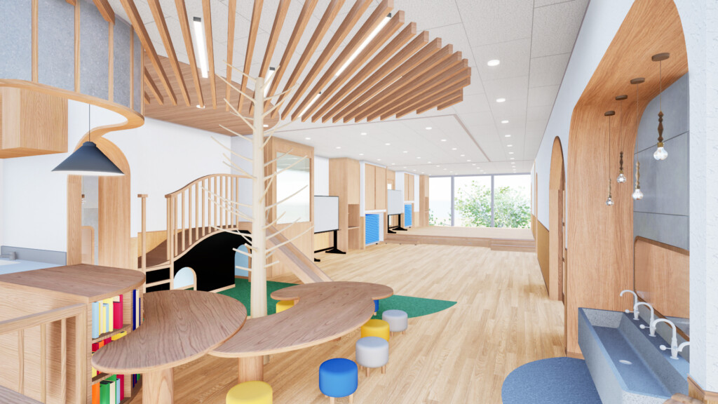 対象年齢は2歳から5歳児で、初年度となる2027年度は2歳児と3歳児(定員各15名)のクラスを先行して設ける。基本の保育時間は午前9時から午後4時までだが、最大午後7時までの延長保育にも対応する。給食の提供や「手ぶら登園」のサポートなど、保護者の負担軽減策も手厚く用意している。