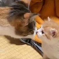猫風邪で、ガリガリに痩せていた三毛猫を保護。まだ家猫になって24時間以内なのに、早くもお膝の上で甘える愛おしい様子が話題を呼んでいます。