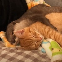 飼い主さんの膝の上をめぐって猫が取り合いに!しかし、元々仲睦まじい2匹はそのままポジションを決定してしまい……!?