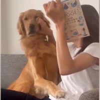 パパと寝ることになったゴールデンレトリバーさんの反応とは…?わかりやすすぎる表情に、笑ってしまう人が続出しています。